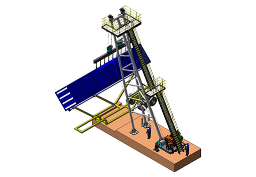 Sistema de recepção de cana picada com capaciidade de 1400 toneladas / hora. Dois Hílios para descarga simultânea com capacidade de 45 toneladas / hora.